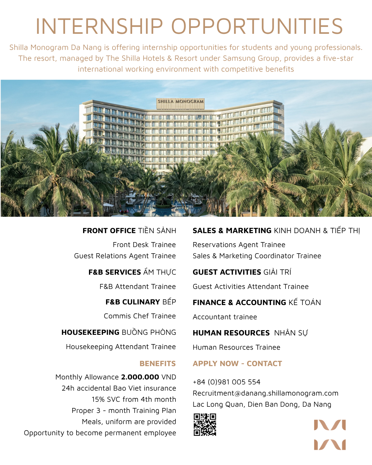 Shilla Monogram Da Nang Resort tuyển thực tập sinh tháng 12/2025